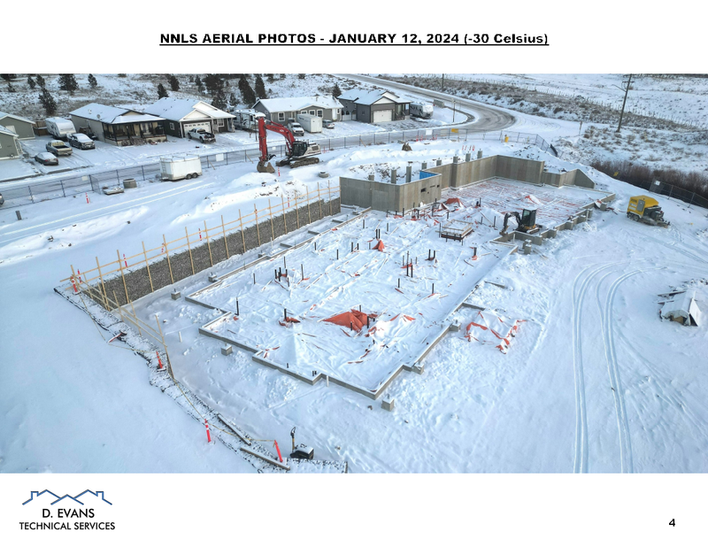 Construction on the Nicola Native Lodge started at the end of August 2023. The proposed date of completion will be fall of 2025. Rock Solid Inc is the excavator and back-filler, the concrete framework is almost complete and site utilities have been put in. The architect is Richard Hunter.